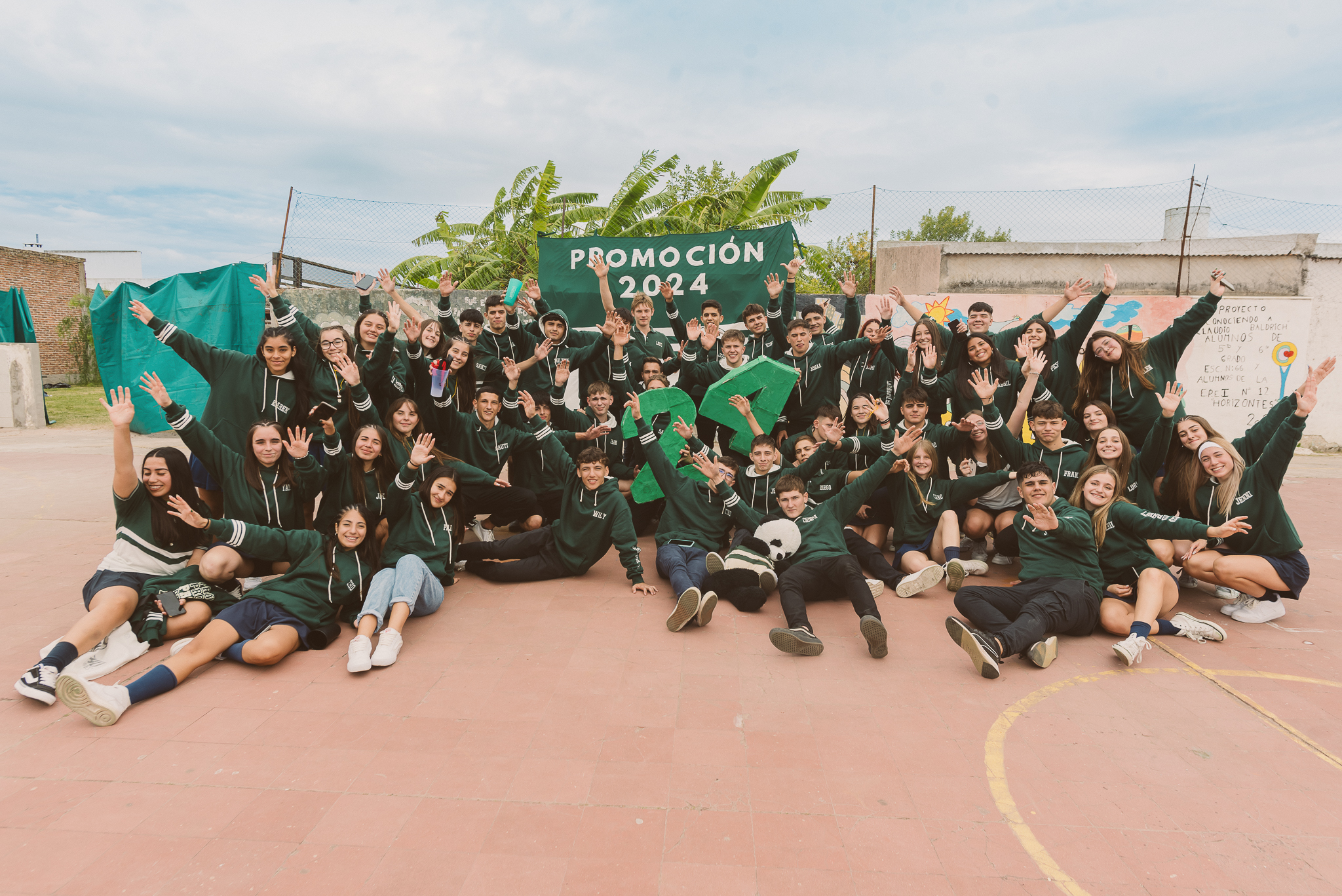 Los alumnos de 6to elaboraron una coreografía el día 12 de abril con la disposición de dar a conocer los buzos distintivos de la promoción.