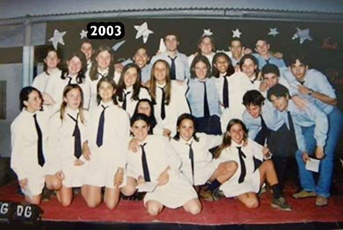 Para el viaje de egresados nos fuimos a Bariloche, que tuvimos que ir menos días para que la mayoría pueda ir, porque en ese momento estábamos atravesando una crisis económica bastante importante. Fuimos una de las únicas promociones (si no la única) que pagamos el viaje trabajando y no vendiendo rifas. Hicimos de todo, pusimos un cine, que nos fue bastante bien, hicimos un canta niño (que era un espacio para que los niños cantasen), y nos fue bastante mal, también hicimos carreras de kartings y motos. Tuvimos la suerte de que un asesor estuviera en Plas-Vec, y nos dieron lugar a algunos varones para que trabajáramos allí, y algunas mujeres también trabajaron en el guardarropa del boliche.