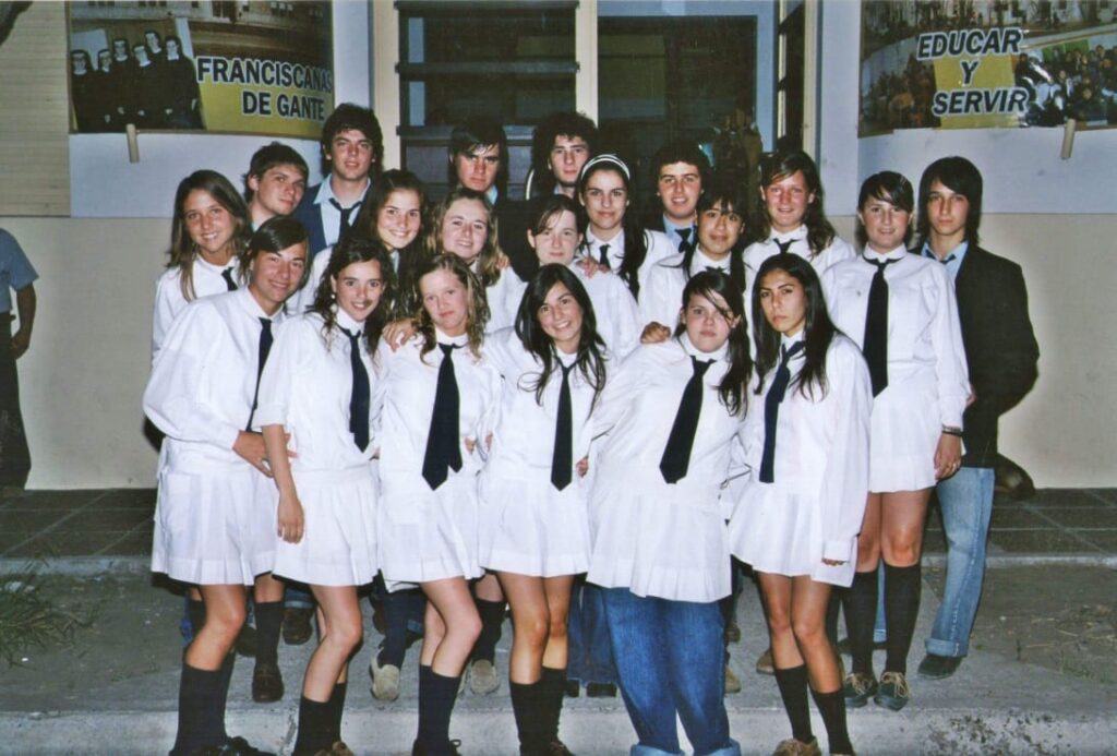 El uniforme era: guardapolvo, corbata, medias azules y los típicos zapatos colegiales. No nos fue incomodo el uniforme, nos habían pedido que diseñáramos un futuro uniforme.